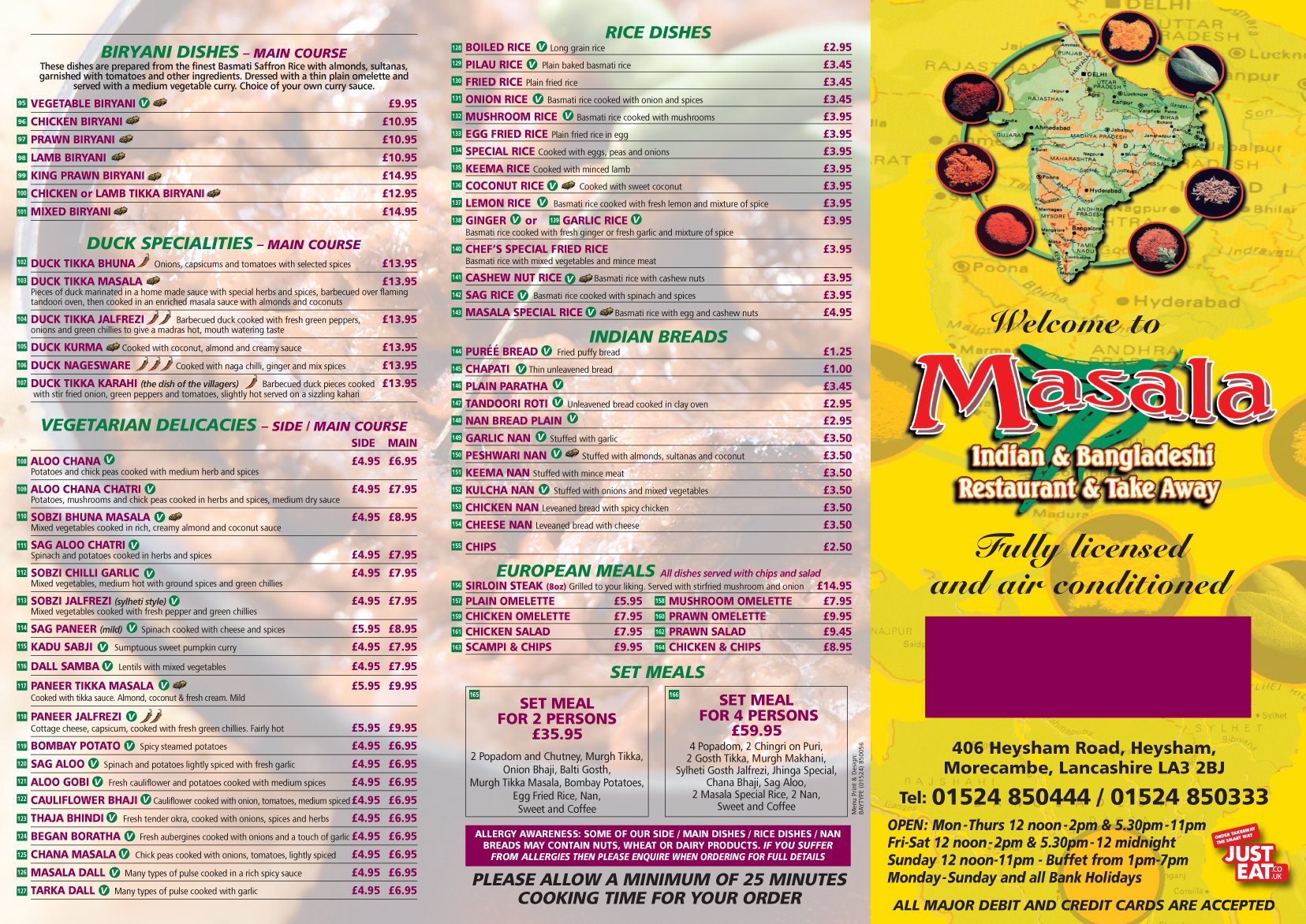 Masala Heysham Menus